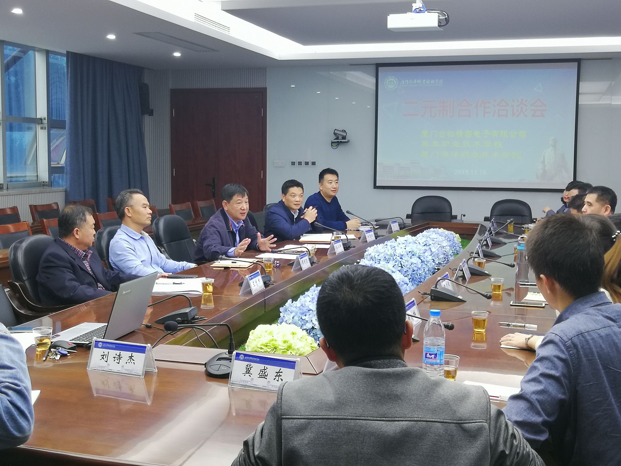 12月18日下午,厦门台松精密电子有限公司副总经理王仁杰、集美职业技术学校教务处主任战瑛等一行莅临我院,与信息技术系、机电工程系就校校企合作开展“二元制”人才培养进行深入探讨。学院党委委员、副院长孙学耕主持会议,教务处和相关系部负责人参加。